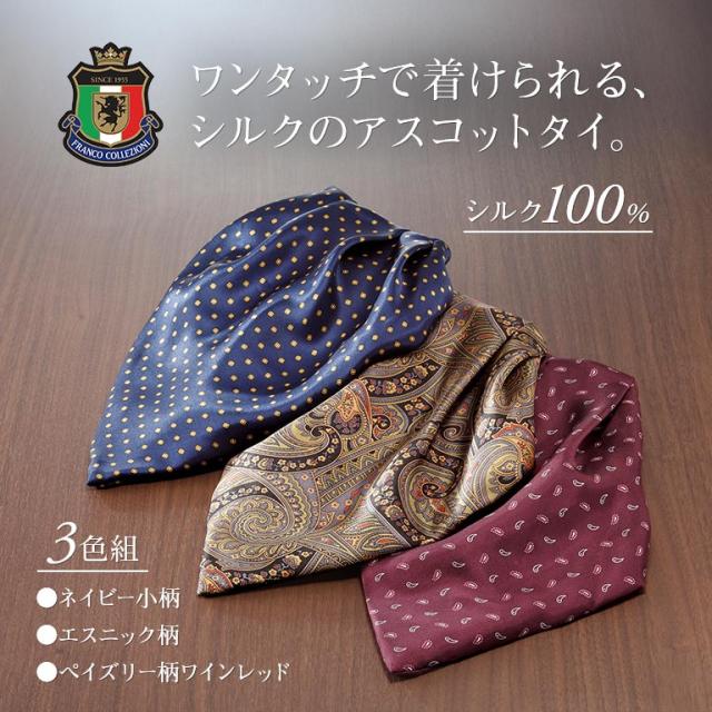ワンタッチアスコットタイ 3色組 アスコットタイ メンズ レディース ネクスカーフ スカーフタイ 簡単着脱 首元おしゃれ フォーマルタイ ワンタッチネクタイ ワンタッチスカーフ カジュアルネックウェア パーティーアクセサリー シルクスカーフ プレゼント ギフト 112264