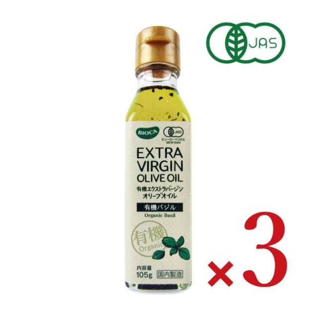 ビオカ 有機エクストラバージンオリーブオイル バジル 105g×3本 有機JAS 沖縄配送不可