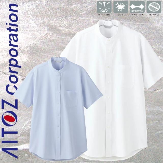 アイトス 634152 メンズ半袖スタンドカラーシャツ AITOZ 吸汗速乾 防汚 ストレッチ 透け防止 ワークウェア (ネーム刺しゅうできます)