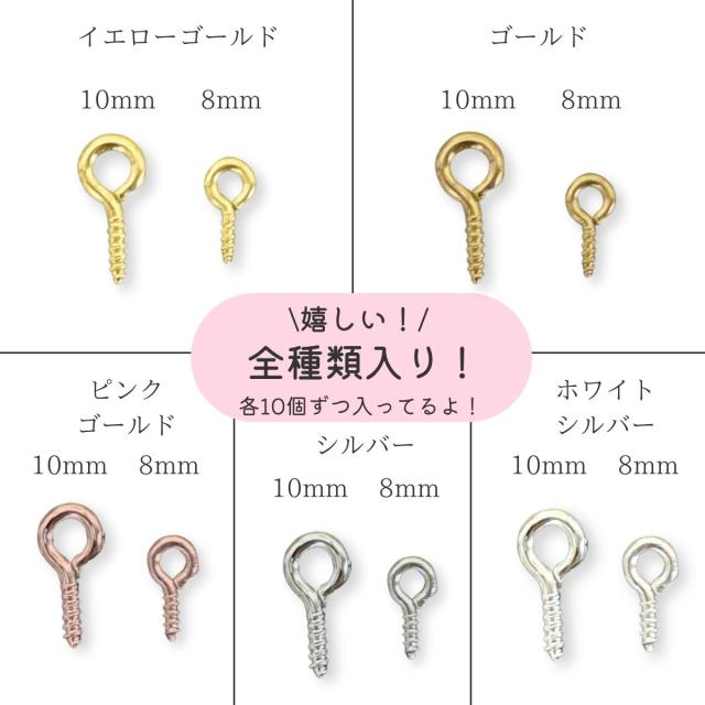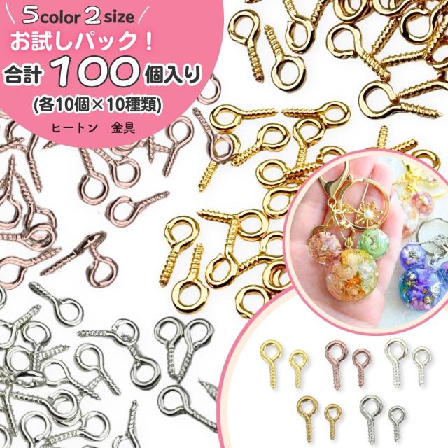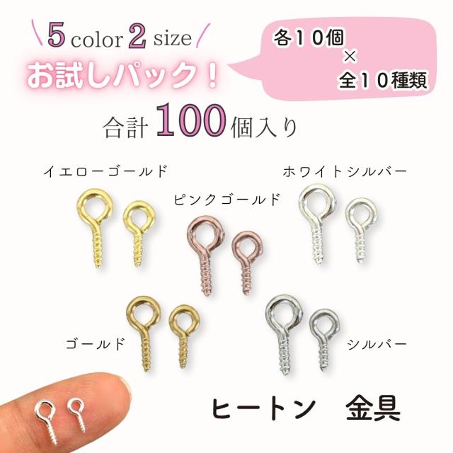 【基礎金具】お試し用 ヒートン 100個セット ゴールド シルバー ピンクゴールド ホワイトシルバー 基礎 金具 アクセサリー パーツ レジン シリコンモールド ハンドメイド クラフト