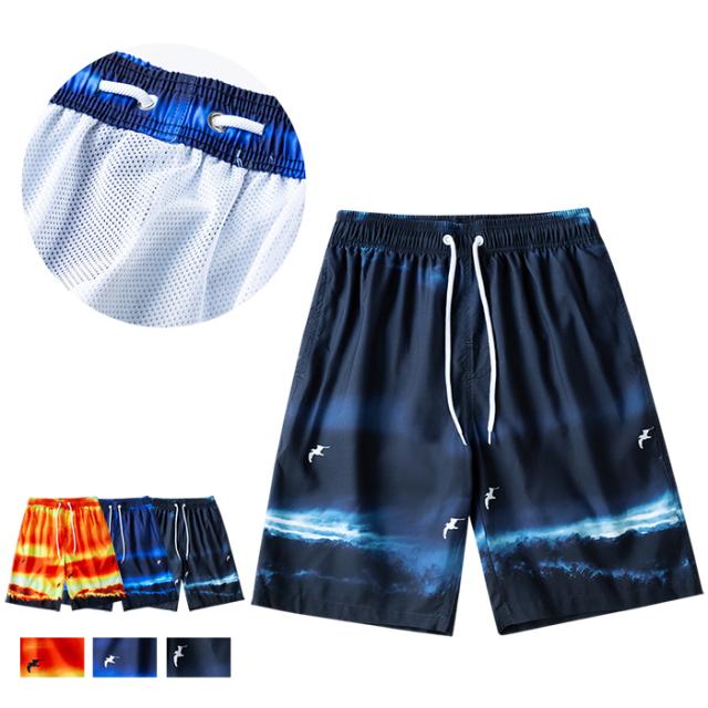 メンズ 水着 海パン スイムパンツ ハーフ丈 ウエストゴム+調整紐付き メッシュインナー ポケット付き 大人 グラデーション リゾート プール 海 夏 青 紺 mm-008