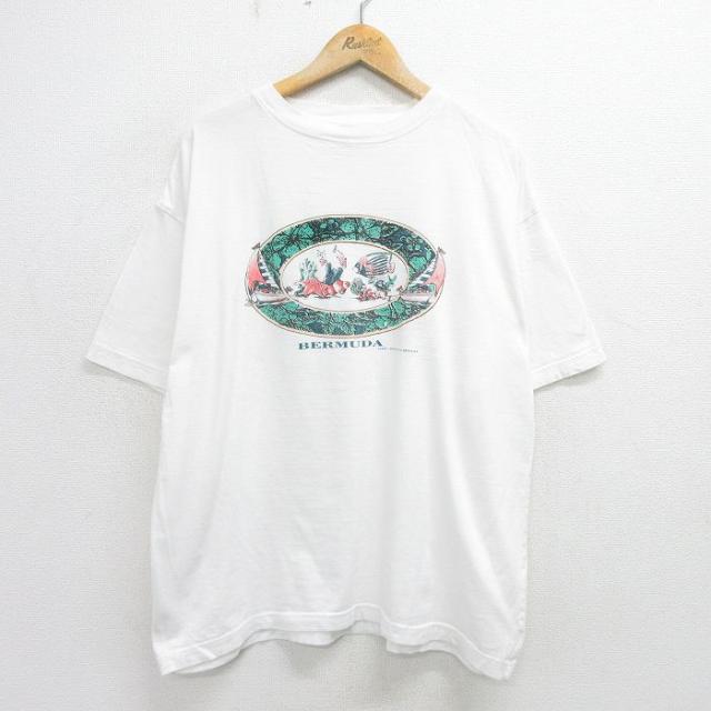 古着 半袖 ビンテージ Tシャツ メンズ 00年代 00s カベラス 魚 大きいサイズ コットン クルーネック 白 ホワイト XLサイズ 中 中古 古着