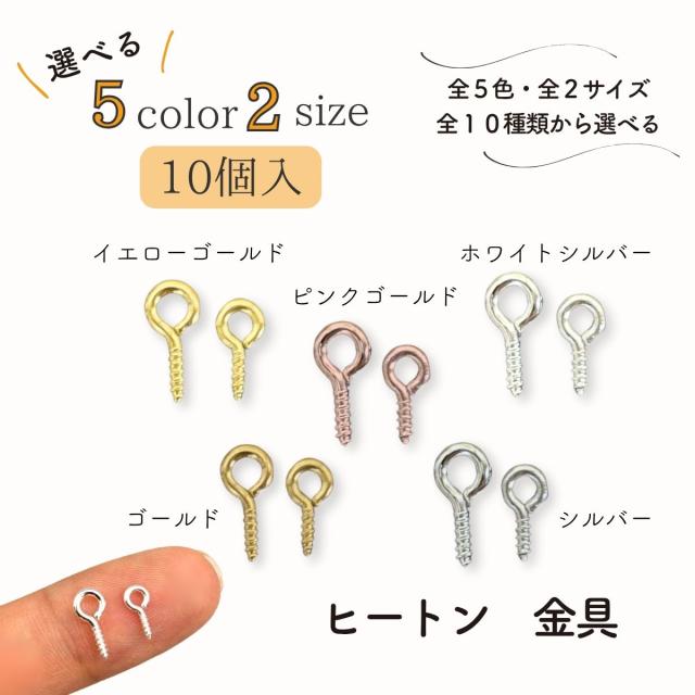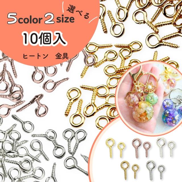 【基礎金具】ヒートン 単色 10個入り 基礎 金具 アクセサリー パーツ ゴールド シルバー ピンクゴールド ホワイトシルバー レジン シリコンモールド ハンドメイド クラフト