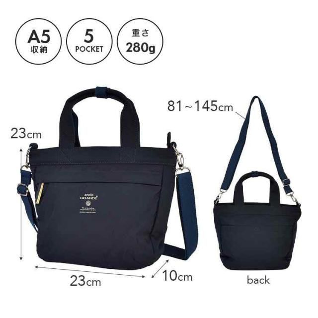 2way トートバッグ ショルダー アネロ グランデ anello GRANDE レディース ブランド おしゃれ 小さめ ミニ 軽量 A5 ファスナー付き ショルダーバッグ トートバック ミニトートバッグ サブバッグ マザーズバッグ かわいい きれいめ 無地 ポケット多い スクエア 通勤 通学 旅行