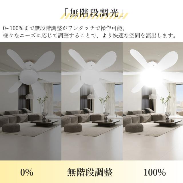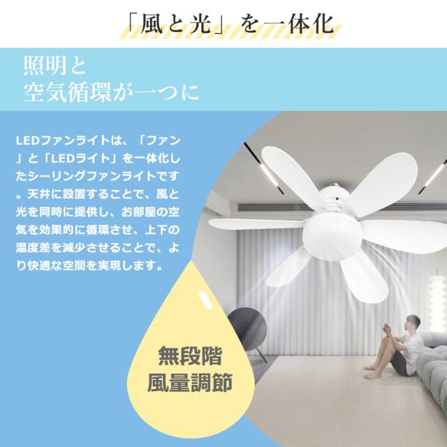 ☆LEDファンライトは、シーリングライトとファンが一体となった多機能照明。天井に設置するだけで、空間全体に光と風を届けます。床に設置する必要がなく、省スペースでお子様やペットのいるご家庭でも安心。室内の空気を循環させ、温度差を緩和しながら、快適な空間を演出します。