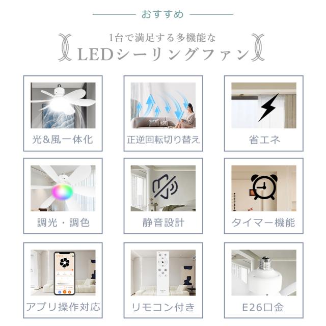 ☆専用アプリでファンやライトのON/OFF、明るさ、色温度をスマホから簡単操作。3段階切替のLEDで、ランタン代わりにも活躍します。