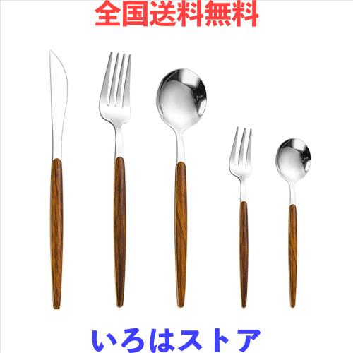【スプーン フォーク ナイフ セット 食器セット】カトラリーセットはステンレス製で、ハンドルに木製で包まれ、自然と現代風が融合しています。