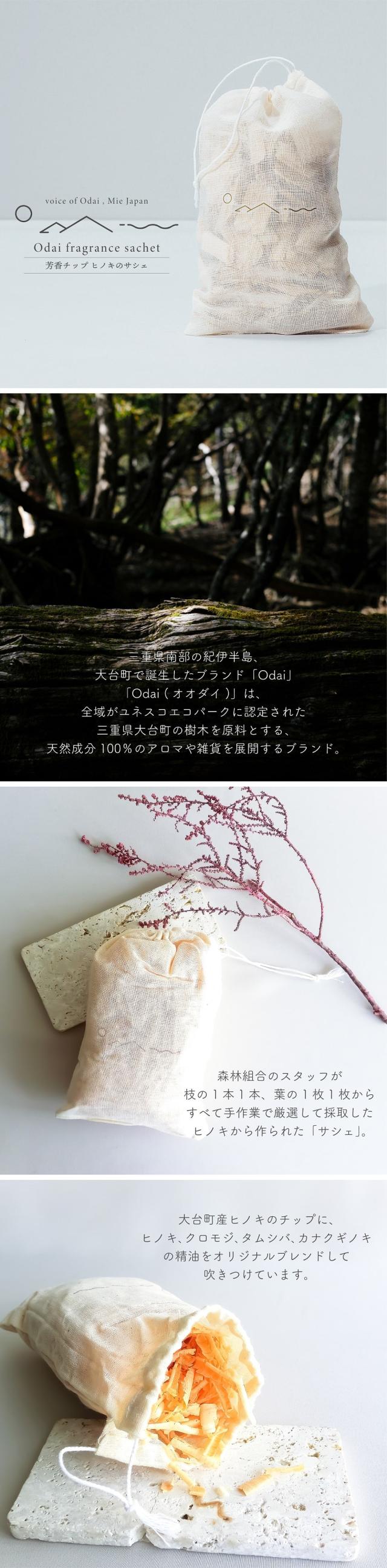 アロマ 匂い袋 Odai 芳香チップ ヒノキのサシェ 大台町産 ヒノキチップ 桧 エッセンシャルオイル 4種の樹木のブレンド精油 自然素材 消臭 防虫 タンス クローゼット フレグランス インテリア