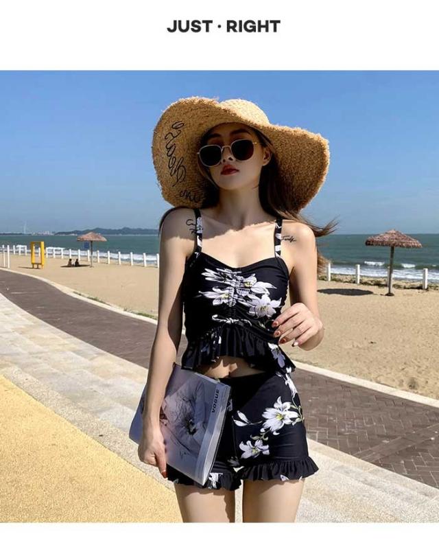 水着 レディース 体型カバー タンキニ 水着 セット ぽっちゃり 大きいサイズ フェミニン かわいい ショートパンツ 着痩せ パッド付 ビーチ 海デート 韓国風 女性用 大人 日焼け止め mg006m3m3m5