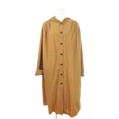 【中古】未使用品 ストールストール STOR STOR ナイロン ロング コート フード フーディ ドロスト ギャザー 9 茶