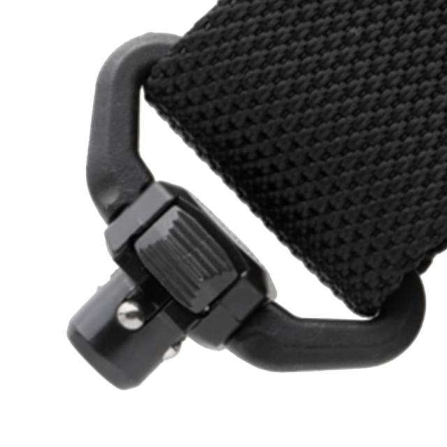 QD(クイック デタッチ)カップ対応のスリングマウントで、迅速かつ確実なスリングの着脱を実現。左右にボタンがあり、両方を押さないと外れない設計。