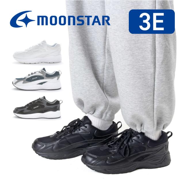 【商品特徴】 ムーンスターのロングセラー「ADVAN」シリーズの3E設計スポーツスニーカーです。アッパーには通気性のあるメッシュ素材を採用。厚みのあるソールでクッション性も良く、ウォーキングやランニングなどの運動はもちろん、仕事、通勤、通学、作業などにもおすすめです。サイズ規格は、22.0cm〜28.0cmにつき、レディースからメンズまで対応します。ヒールの高さは5.0cmで、重量は26.0cmで片足約310gです。