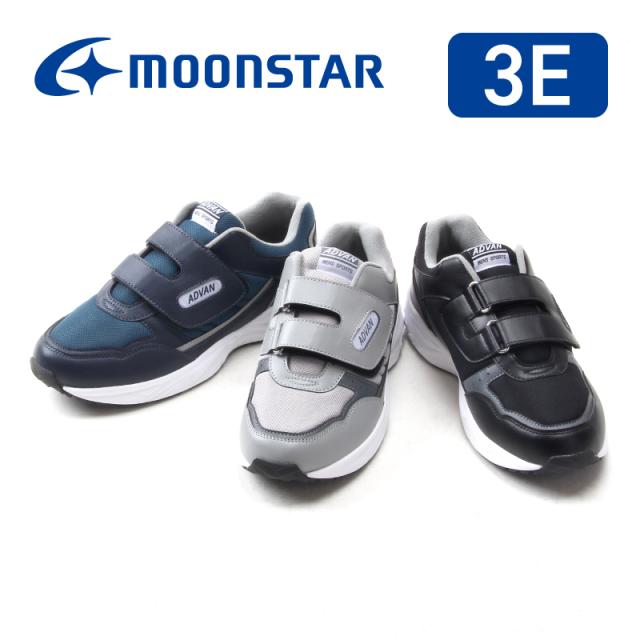 【商品特徴】 ムーンスターのロングセラー「ADVAN」シリーズの3E設計スポーツスニーカーです。脱ぎ履きが簡単な面ファスナータイプで、アッパーには通気性のあるメッシュ素材を採用しています。厚みのあるソールでクッション性も良く、デイリーユースやウォーキング、仕事、作業からリハビリ、介護、通院、デイサービスなどにもおすすめです。ヒールの高さは5.0cmで、重量は26.0cmで片足約325gです。