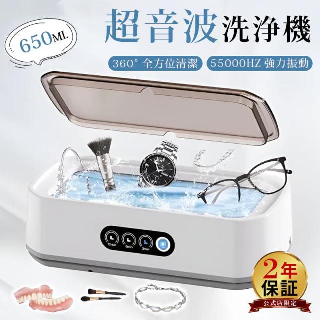 超音波洗浄機 メガネクリーナー 304ステンレス鋼 55000Hz強力振動 3段階タイマー 650ml大容量 超音波クリーナー 軽量 小型 家用腕時計/指輪/ジュエリー 洗浄機