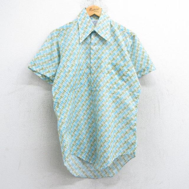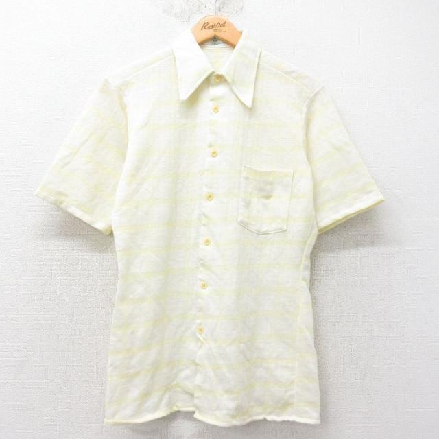 古着 半袖 シャツ メンズ 70年代 70s 総柄 黄他 イエロー Sサイズ 中古 トップス 中古 古着