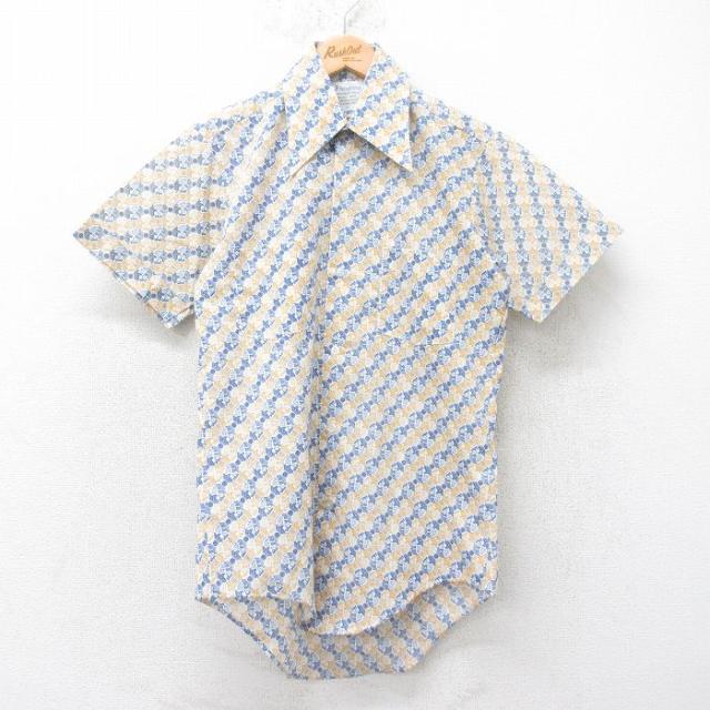 【商品名】 S★古着 半袖 シャツ メンズ 70年代 70s 総柄 黄他