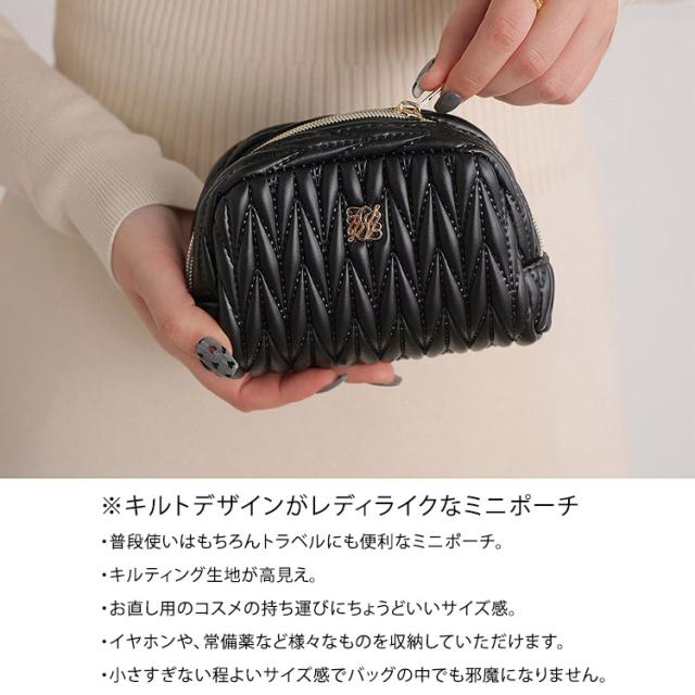 キルティング ポーチ レディース ミニポーチ マルチポーチ コスメポーチ 化粧ポーチ 小物入れ 合皮 おしゃれ かわいい シンプル 高見え 上品 ギフト プレゼント メイクポーチ ファスナー 小さめ 旅行用 持ち運び