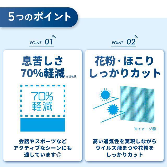 ・「新開発」特殊不織布フィルタ採用で呼吸のしやすさとフィルタ性能を両立