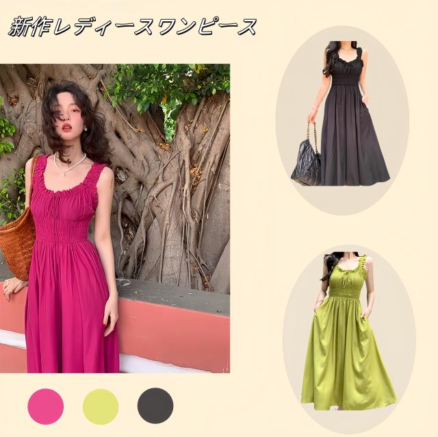 ハイウエスト スリム ワンピース レディース 夏 吊りスカート Vネック ワンピース 可愛い細見え 着痩せスタイル