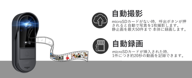 microSDカードをセットすれば、1件につき約20秒の動画も記録できます。