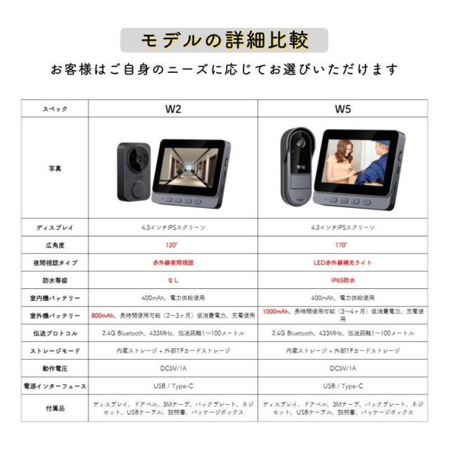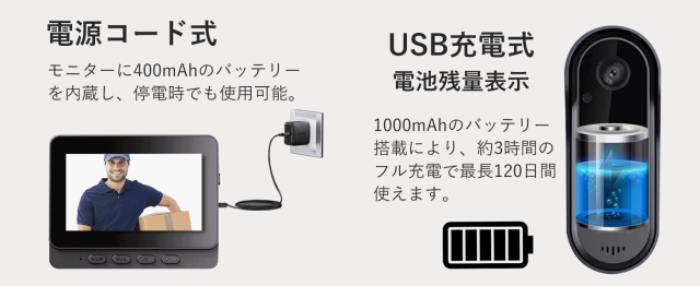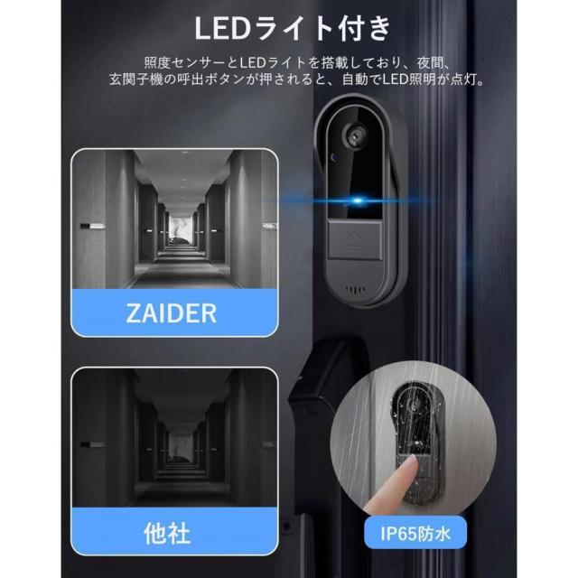 インターホン カメラ付き ワイヤレス 工事不要 モニター付き テレビドアホン 双方向通話 録画 暗視ドアホン USB充電 玄関 防犯 介護 チャイム インターホン ドアホン