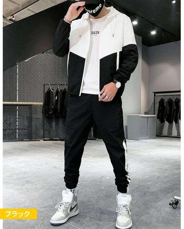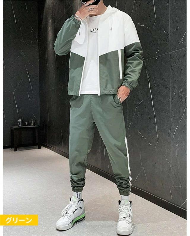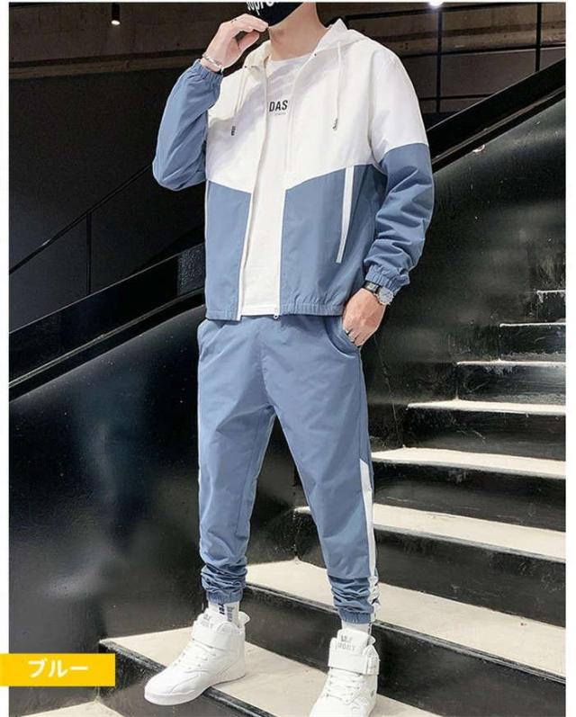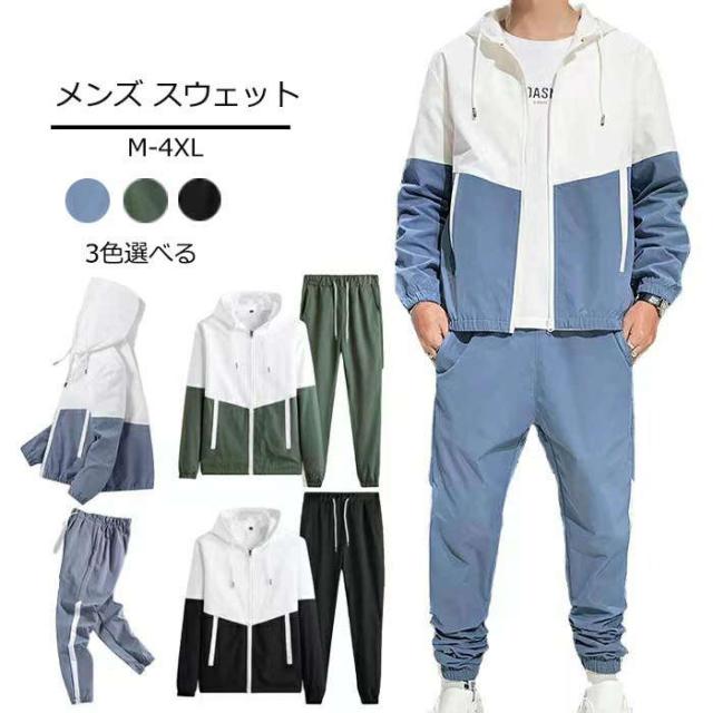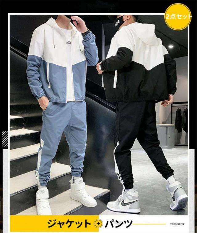 商品名:メンズ スウェット ジャケット ロングパンツ ジャージ セットアップ 運動着 セットアップ 春秋 カコイイ 2点セット 上下セット カラー配色 大きいサイズ 20代 30代 40代
