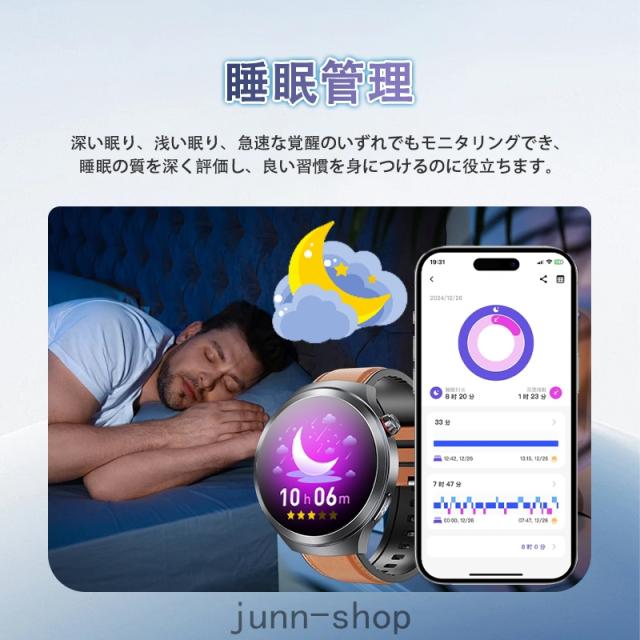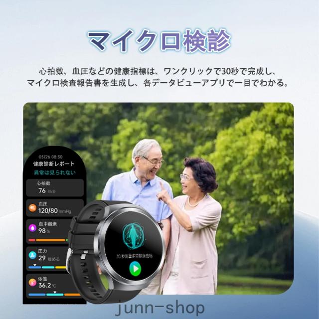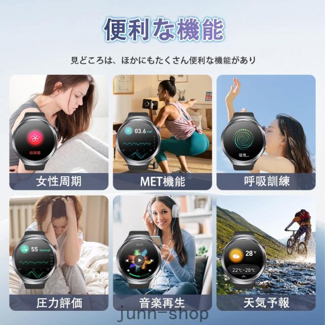 ●24H健康管理:多機能測定、血中酸素、通話可能、カロリー、24時間体温監視、アラート、睡眠監視やストレス監視などの測定機能付き