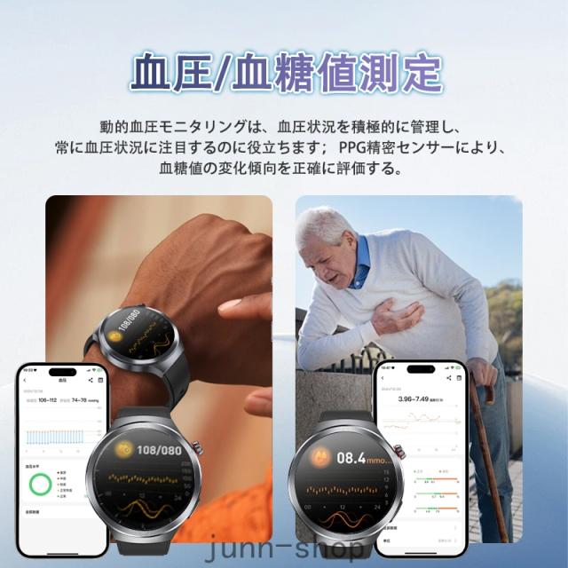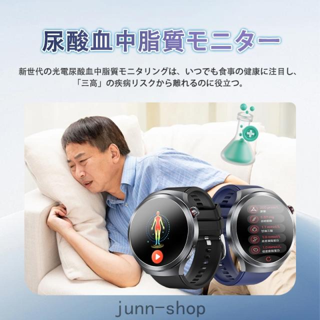 スマートウォッチ 血糖値 血圧測定 尿酸モニタリング 血中脂質 心拍数 血中酸素 心電図ECG+HRV BMI体組成 睡眠監視 体温検知 月経周期トラッキング SOS緊急連絡 通話機能付き 着信&メッセージ通知 iphone Android対応 腕時計 男女兼用 プレゼント