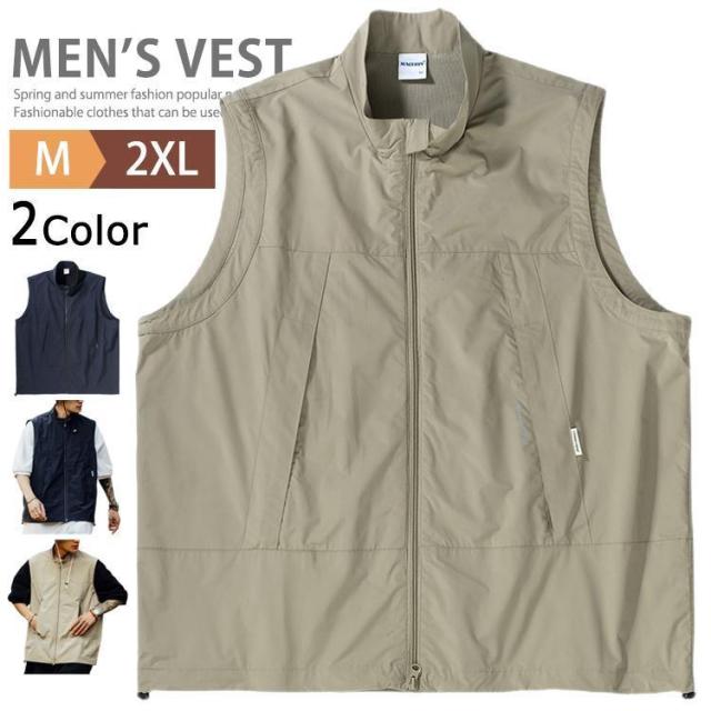 ゴルフウェア メンズ 春夏 カジュアルベスト サマーベスト ウインドブレーカー ベスト お釣りベスト ゴルフベスト スポーツ ノースリーブ スタンドカラー 前開き 父の日 イベントベスト チームウエア アウトドア 制服 男性 紳士 通勤 作業服 ジップアップ マン キャンプ 防風 通気性 薄手 上着 無地