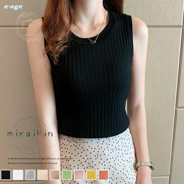 タンクトップ リブニット ノースリーブ レディース ラウンドネック ニット トップス春 無地 着回し 大人カジュアル おしゃれ 20代30代40代50代