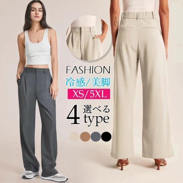 レディース ワイドパンツ 夏 涼しい 接触冷感 美脚ストレッチ 涼感ワイドパンツ 落ち感 体型カバー 無地 おしゃれ スーツパンツ
