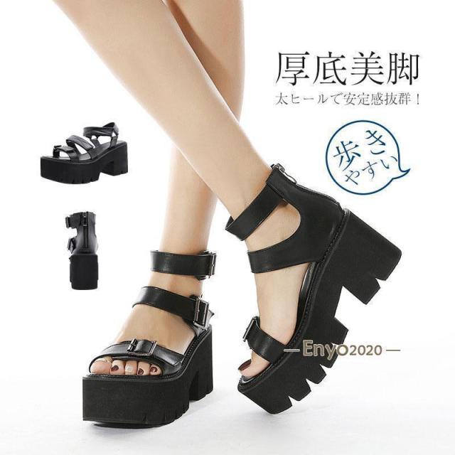 厚底サンダル ハイヒール ヒール9cm 身長アップ 夏靴 レディース靴 サンダル サマーブーツ 夏 ぺたんこ ベルト ロングブーツ ハイヒール
