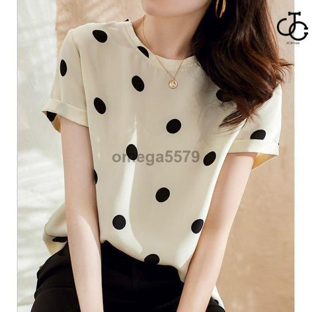 トップス レディース ブラウス シャツ カットソー 半袖 ドット柄 水玉 フェミニン 可愛い 春夏