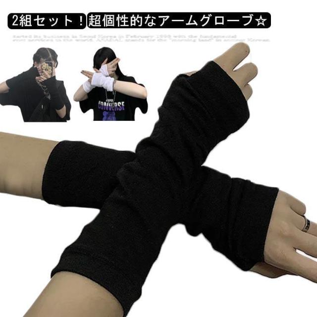 アームウォーマー アームカバー 地雷系ファッション レディース 指穴あり トゥー隠し ストレッチ 痩せ 保護 美腕 uv対策 冷え対策 蒸れない V系