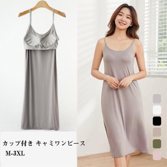 カップ付き キャミワンピ キャミワンピース インナーワンピース ロングキャミソール ペチコート 透け防止 インナー 下着