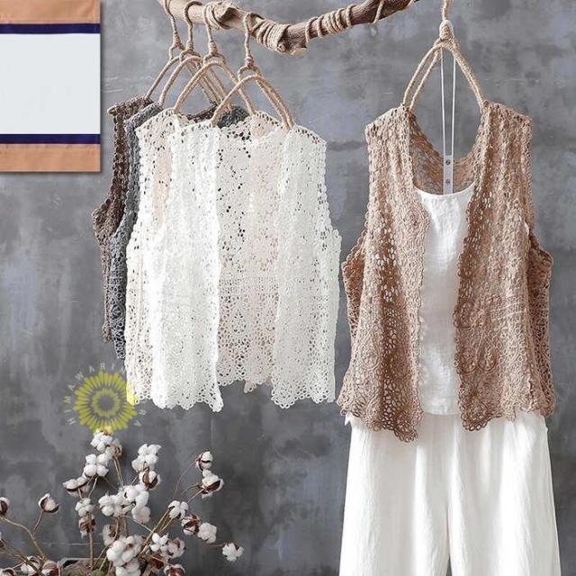 花柄レースベスト レディース 夏 総レース ベスト ゆったり コットン ノースリーブ 体型カバー シンプル カジュアル オシャレ 羽織り 透かし編み
