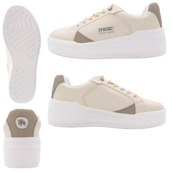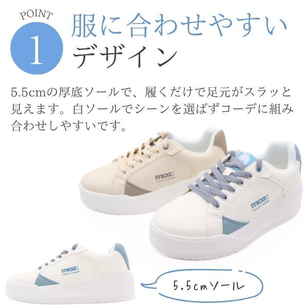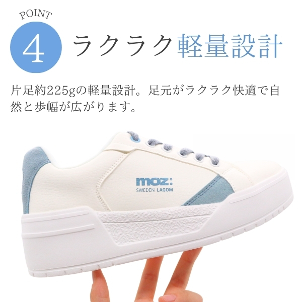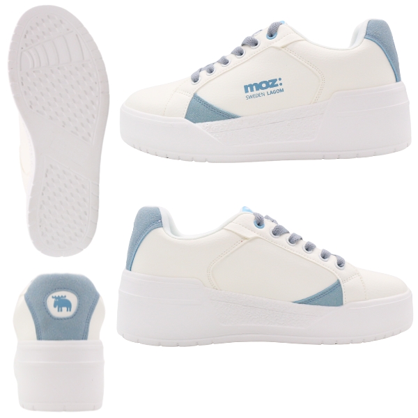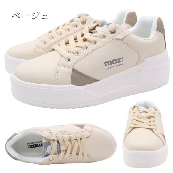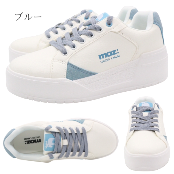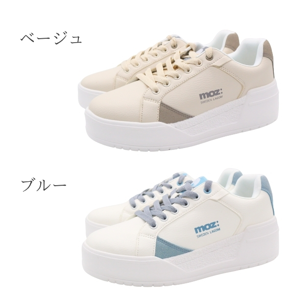 MOZ モズ スニーカー レディース 靴 白 ホワイト ブルー くすみブルー ベージュ 軽い 軽量 レースアップ コートスニーカー ワンポイント 厚底 スニーカー スタイルアップ 美脚 北欧 スエーデン カジュアル きれいめ 251510