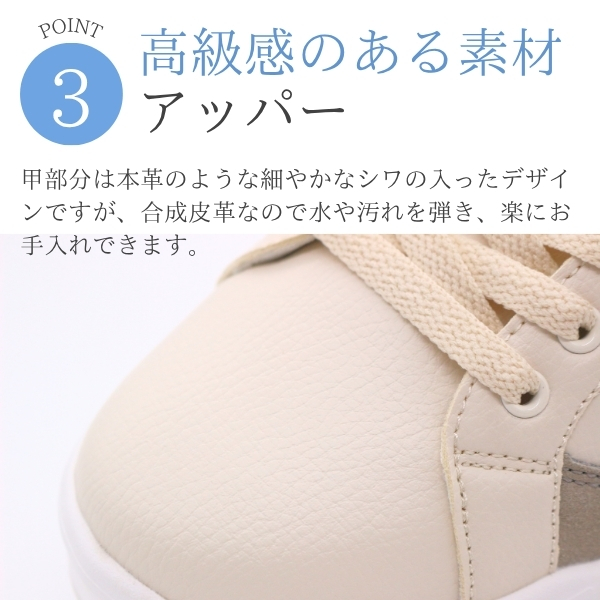 甲部分は本革のような細やかなシワの入ったデザインですが、合成皮革なので水や汚れを弾き、楽にお手入れできます。