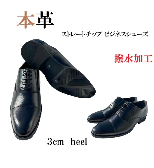 本革 本革ストレートチップ ビジネスシューズ 革靴 、ストレートチップ メンズ フォーマル 撥水加工 3cmヒール オールマイティ 足に馴染む つま先メッシュ