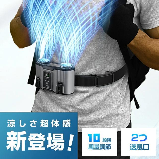 【2in1充電・送風】腰掛け扇風機 24000mAh大容量 ベルトファン モバイルバッテリー機能付き 首かけ 携帯扇風機 ハンズフリー 強力 10段階風量 冷風 80時間連続稼働 長時間使用 省エネ 暑さ対策 アウトドア 釣り 登山