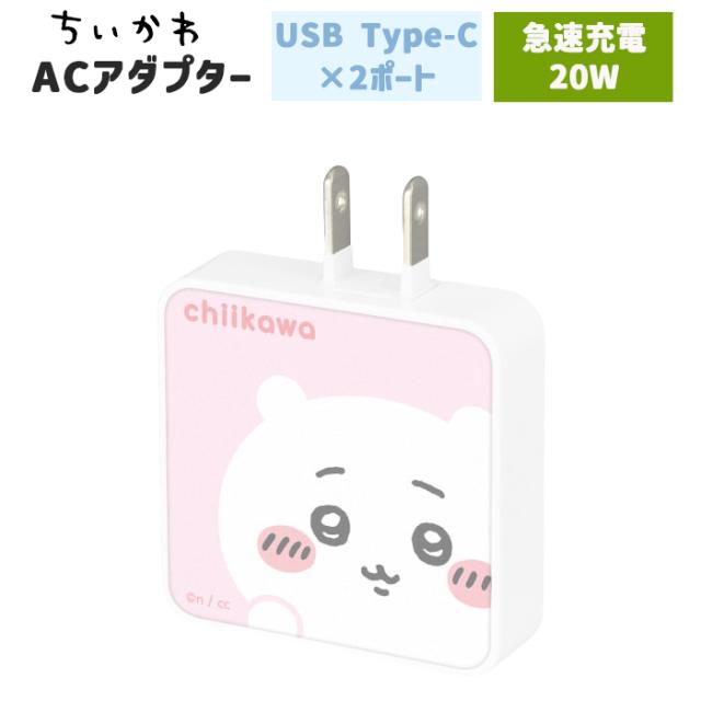 ちいかわ スマホ 充電器 ハチワレ うさぎ モモンガ キャラクター グッズ ACアダプタ 2台同時充電 USB Aポート Cポート type-C コンセント 充電 アダプタ 小型 軽量 コンパクト 持ち運び iPhone Android おしゃれ かわいい PD20W対応 ピンク ブルー イエロー パープル CK-77