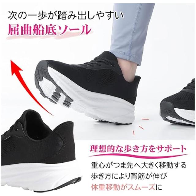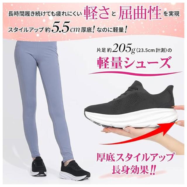 しゃがまずに履ける レディース ウォーキングシューズ 美脚にみえるスニーカー 厚底スニーカー +5.5cm 撥水加工 軽量 抗菌防臭