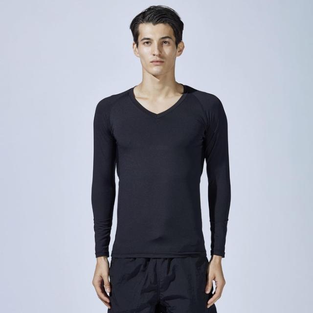 夏用インナー 長袖Vネック[接触冷感 吸汗速乾 スピード消臭 UVカット コンプレッション