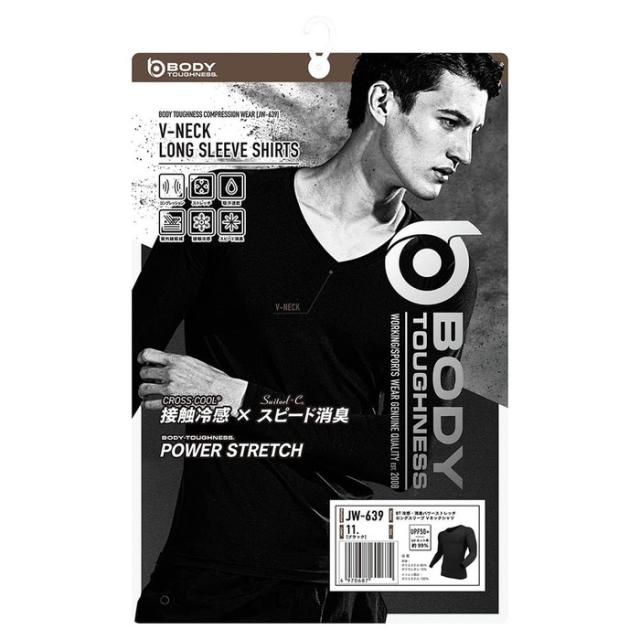 おたふく手袋 メンズ 夏用 インナー 長袖Vネック アンダーウェア スポーツインナー 接触冷感 吸汗速乾 スピード消臭 UVカット コンプレッション ブラック 黒 送料無料 OTAFUKU JW-639