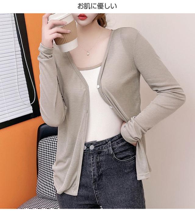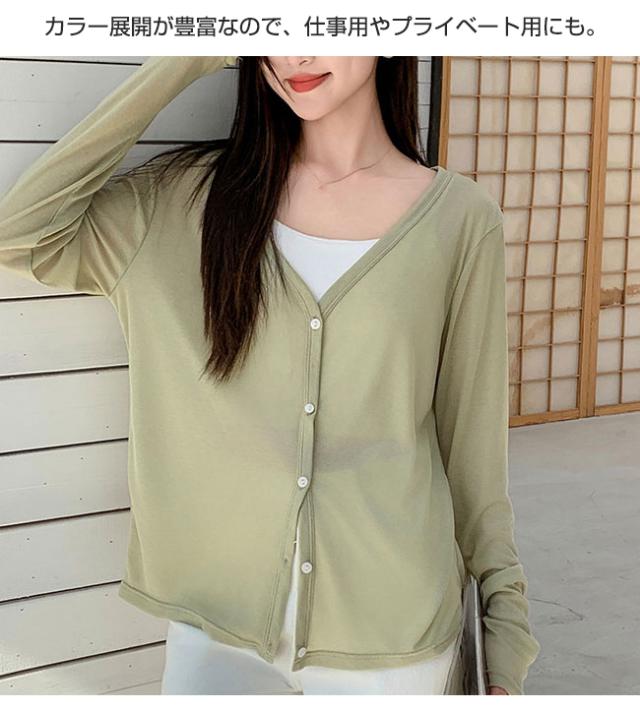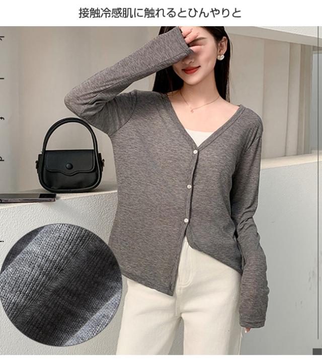 夏新作 カーディガン レディース 接触冷感 春夏 長袖 ショート 薄手 涼しい vネック ゆったり ニットカーディガン サマーニット トップス 羽織 通勤 オフィス 冷房対策 日焼け止め 体型カバー 透け 着痩せ
