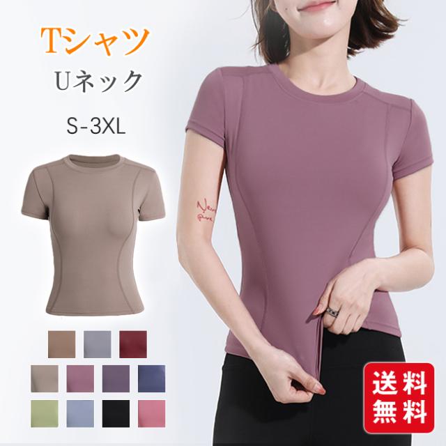 夏新作 半袖 Tシャツ トップス レディース ヨガウェア スポーツウェア Uネック 運動着 ヨガ トレーニング ホットヨガ おしゃれ 伸縮性 通気性