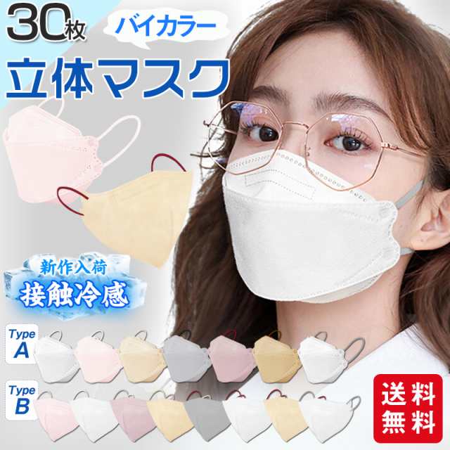 冷感マスク バイカラーマスク 小顔3Dマスク 立体マスク 30枚入 不織布マスク 息がしやすい くすみカラー 小顔 パステルカラー 小さめ 4層 口紅が付きにくいバイカラー ひんやり