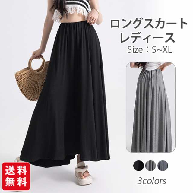 ロングスカート マキシ 無地 ゆったり シンプル 着痩せ 大人 ウエストゴム マキシ丈 レディース フレア Aライン ハイウエスト ゆったり 体型カバー
