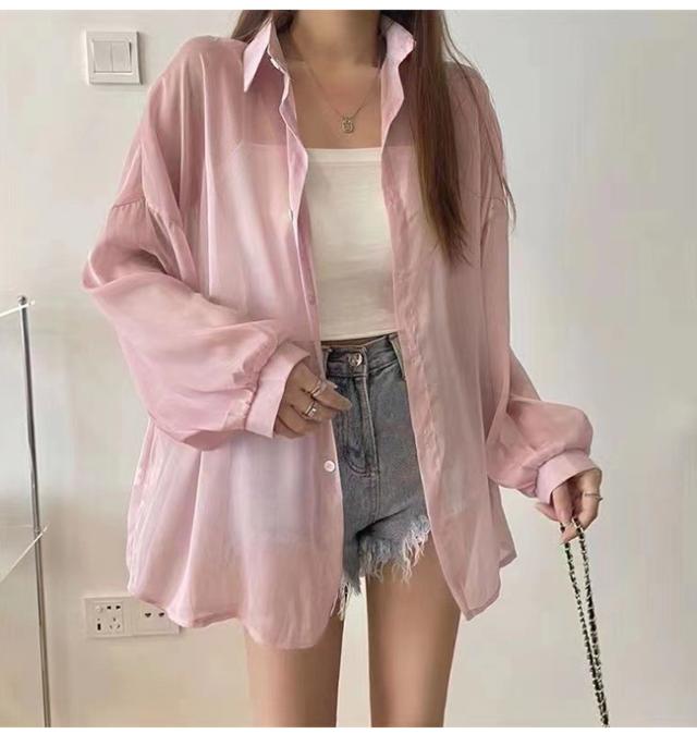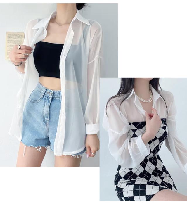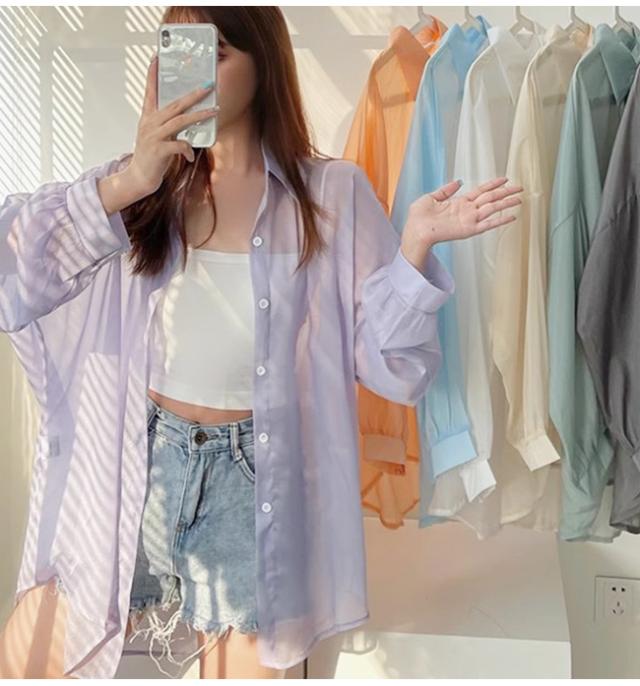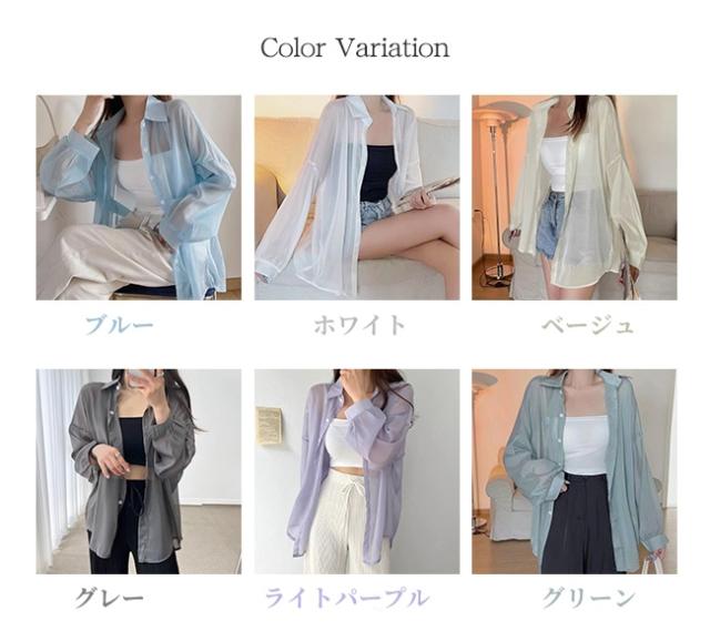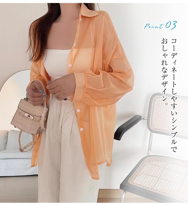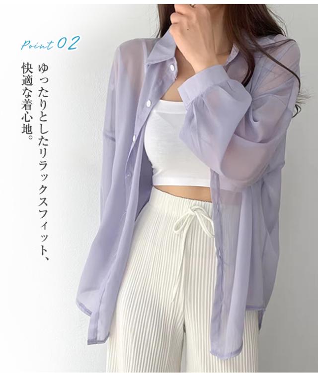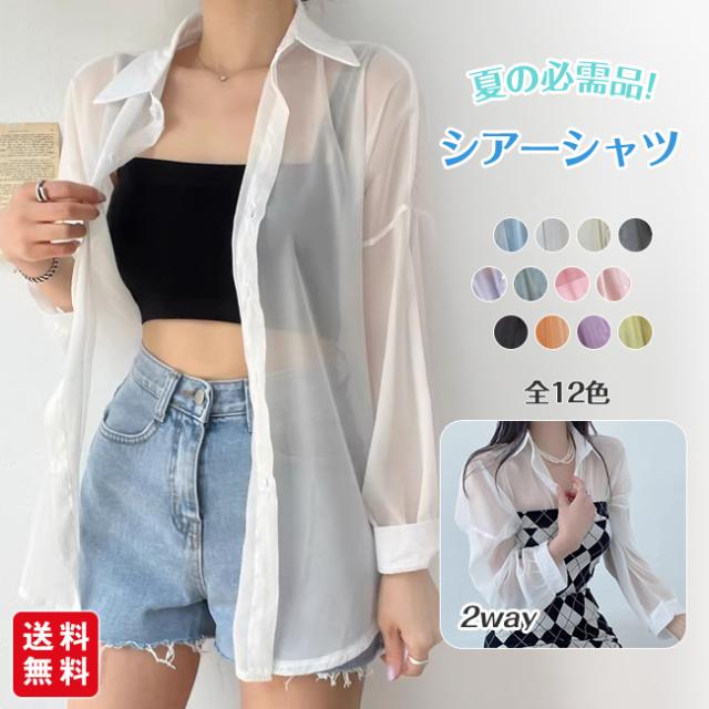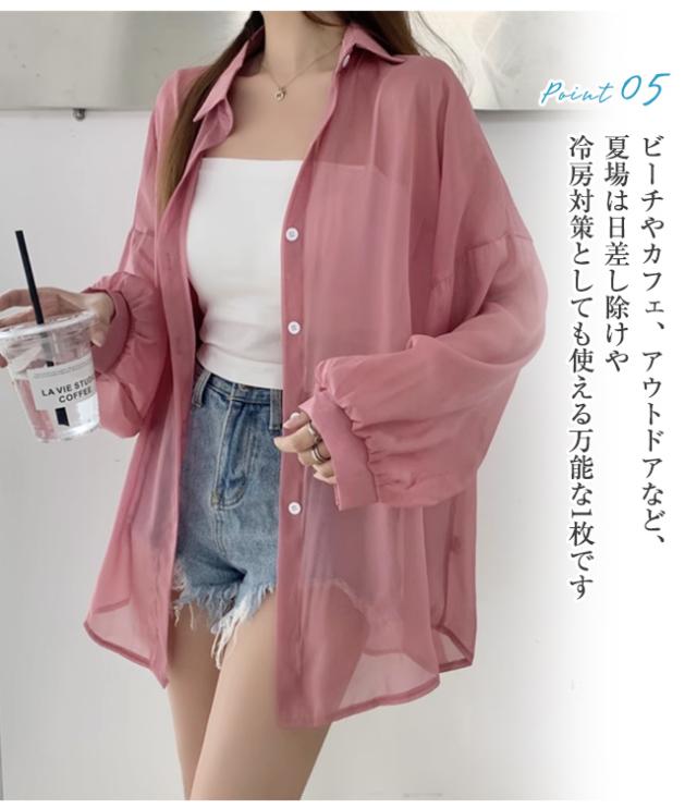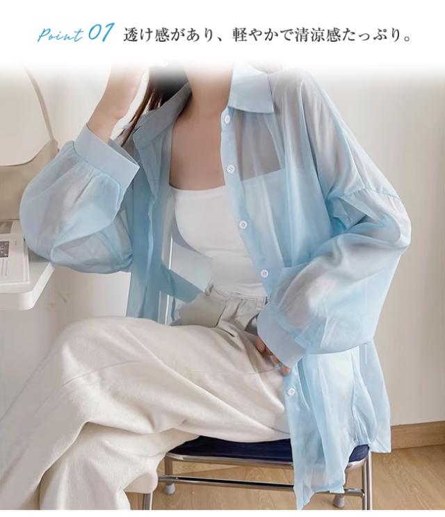 【2点15%OFF】夏新作 シアーシャツ 透け感 レディース ブラウス 長袖 トップス シャツ 重ね着 日焼け対策 全12色 オーバーサイズ トレンド シースルー カジュアル 羽織り 薄手
