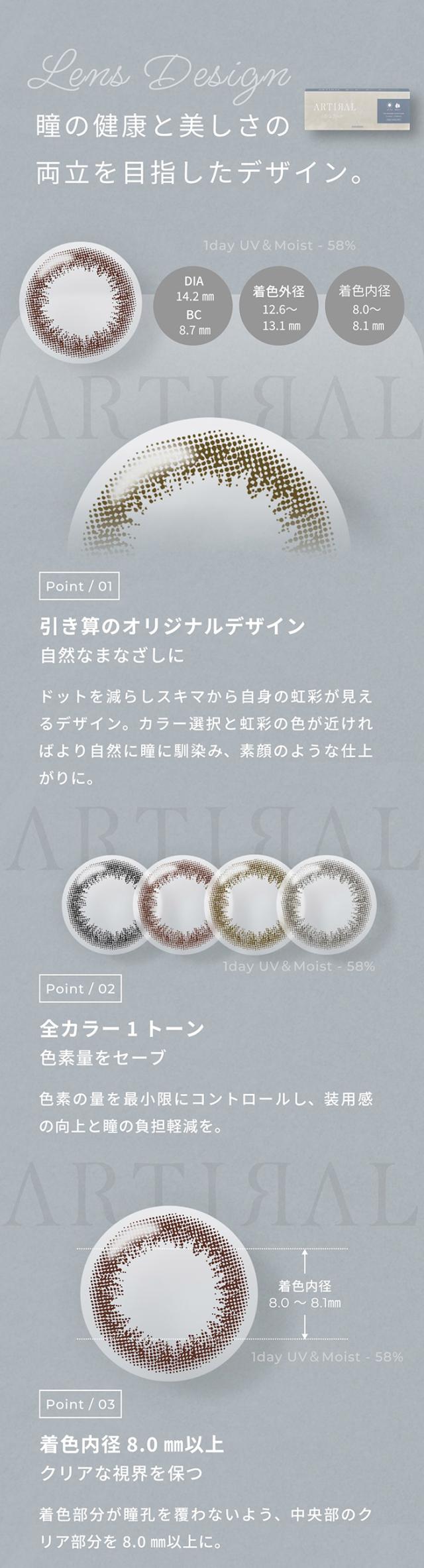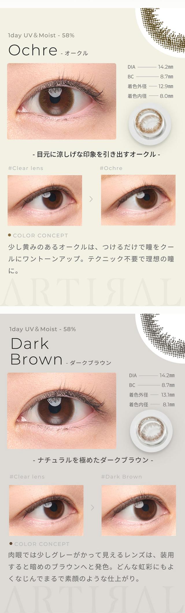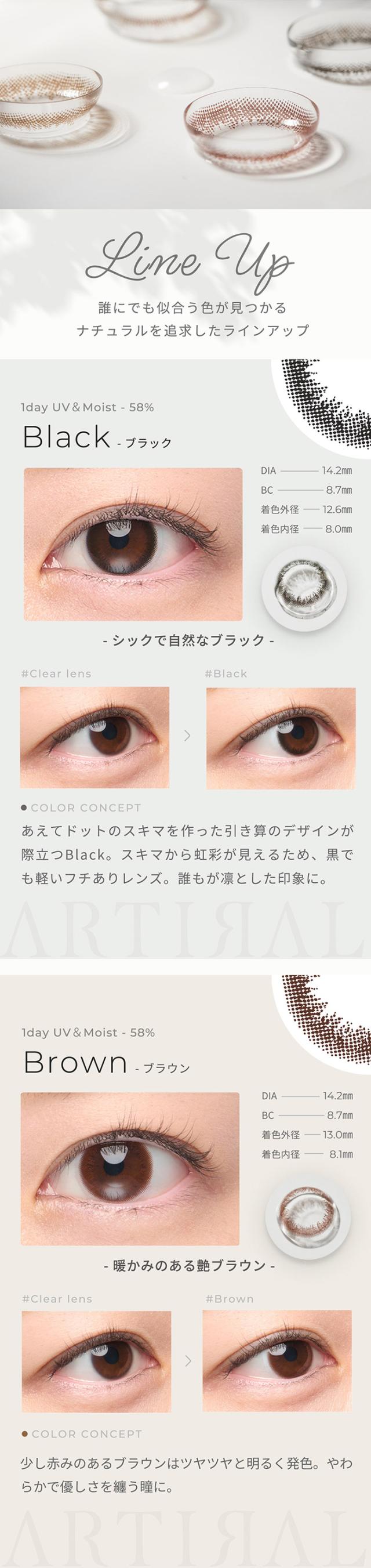 カラコン ワンデー 度あり アーティラルワンデーUV&モイスト 1箱10枚入 直径14.2mm BC8.7 UVカット 高含水 ブラック オークル ブラウン ダークブラウン【送料無料】 【2】